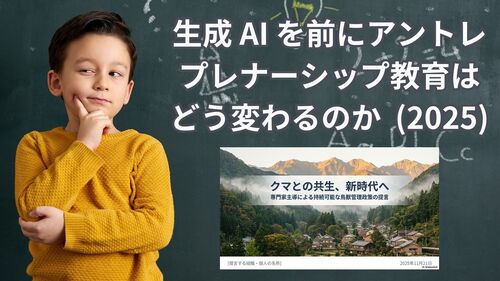 アントレプレナーシップ教育の一種として、公共政策を使った「政策起業」のワークショップを実施しました。 テーマは「クマ対策」です。 冬眠の時期を迎えたため、現在は下火となっていますが、今年、クマは日本全国を揺るがす社会問題となりました。さらに…