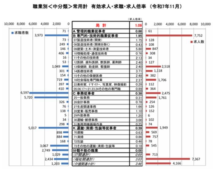 - éèŠåŽïŒæ±äººïŒã®è³ªã®å€å - äºåè·ãªã©ã®æ±äººã¯æžããã¹ãã«ãå¿ èŠãªè·çš®ãå¢ããïŒããšãã°çŸåšã®äžè¬äºåè·ã¯ 0.3 åïŒ